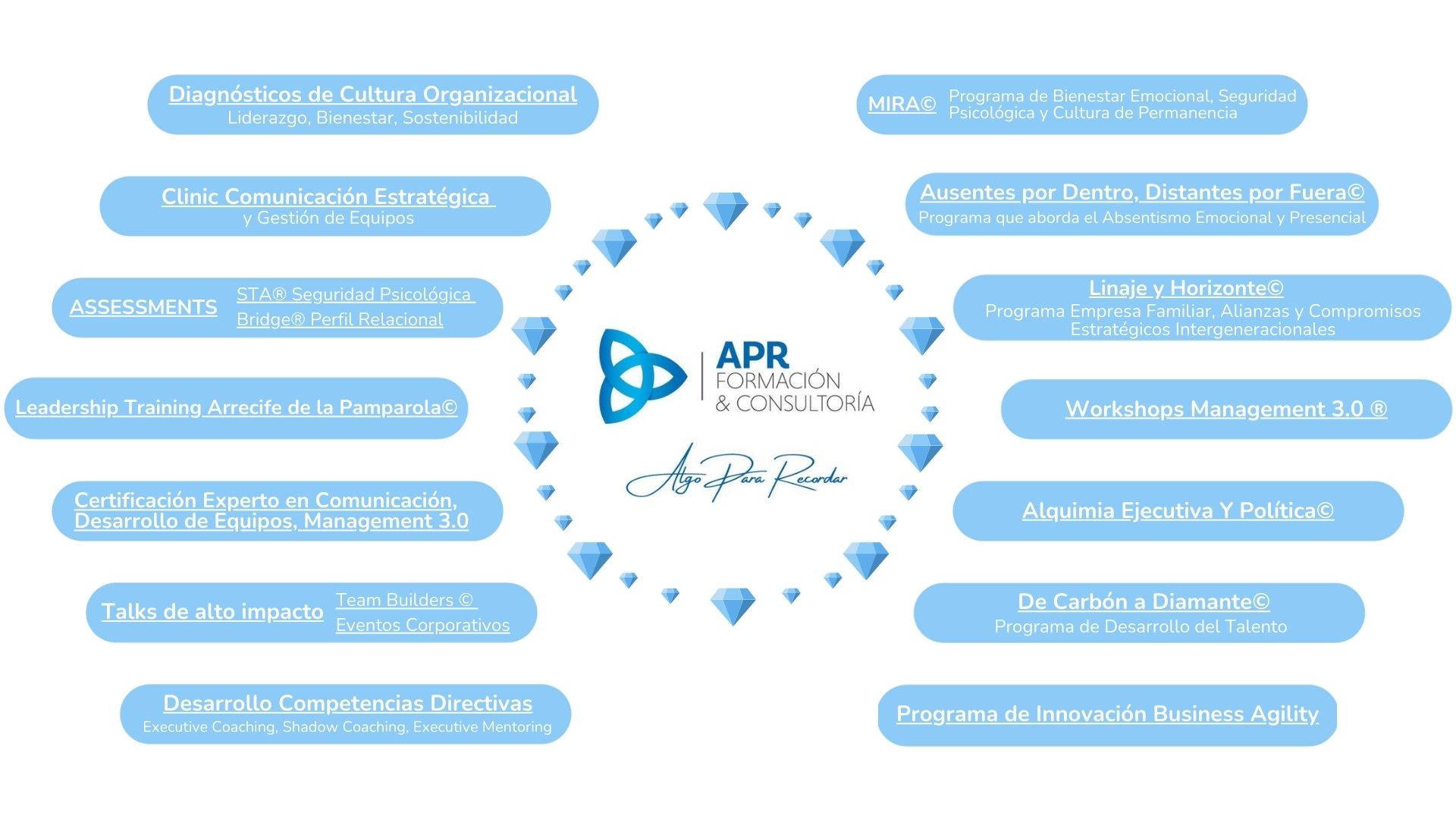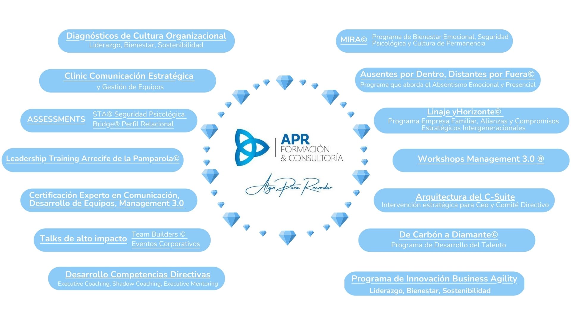 APR es una consultoría certificada, con más de 25 años de experiencia, especializada en Procesos de Gestión del Cambio, Transformación y Desarrollo de la Cultura Organizacional.